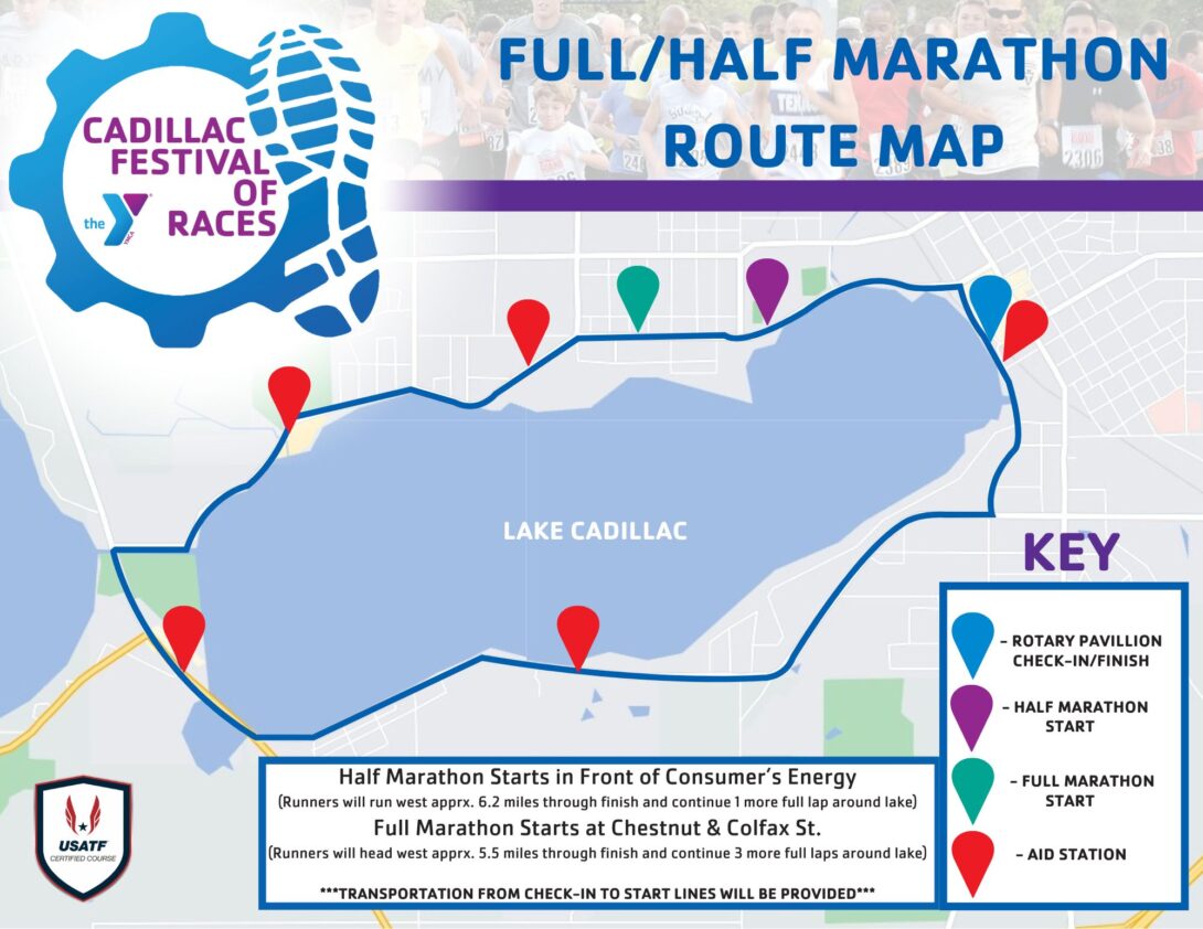 Cadillac Festival of Races is back for 2026! 5K,10K, Half and Full Marathons, 1/4 Mile Swim, 7 Mile Team Relay, and Kids Fun run! The Marathon will be a Boston Qualifier. Events start at Cadillac Rotary Pavilion. leading along beautiful Lake Cadillac. Proceeds to benefit the Cadillac Area YMCA free 7th grade membership program. Register by August 15th to be guaranteed an event t-shirt. Age bracket top three and finisher medals will be awarded.