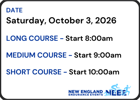 Timed race. Results will to be posted to NEEevents.com within 24 hours of race completion.